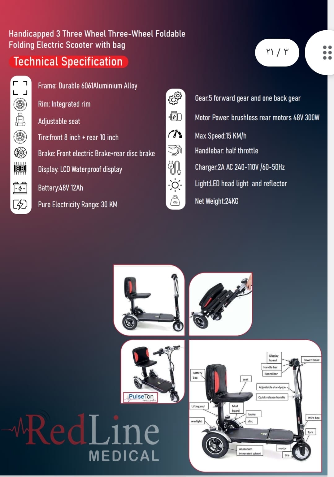سكوتر كهربائي موديل PT-3WS