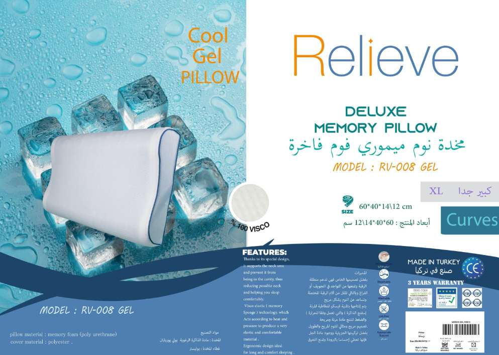 مخدة نوم ميموري فوم فاخرة مع جل تركي Relieve RV-008 GEL