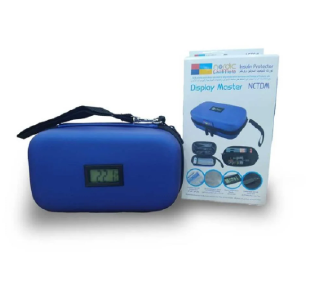 مصنوعة من حاجز واقي عازل للحرارة بالإضافة الى كيس ثلجي هذا سوف يحمي الانسولين وغيرها من المنتجات المماثلة من التلف عن طريق التعرض لارتفاع درجة الحرارة