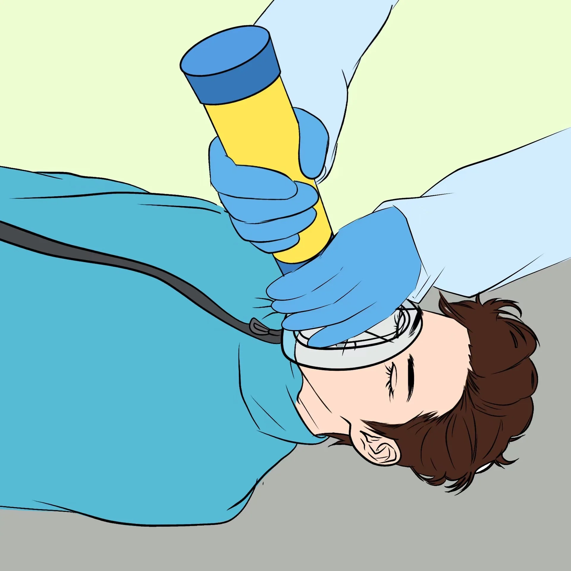 اضغط مع الاستمرار على حامل وصمام تنفيس بيدك بحيث يشكل ختم شامل جيد على وجه الضحية. هذا يسمح لها بتوليد شفط قوي.