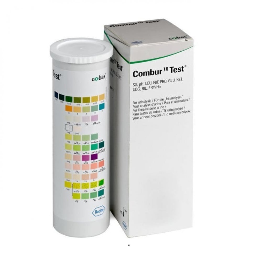- تستخدم شرائط كومبير 10 عن طريق غمسها في عينة من بول المريض.