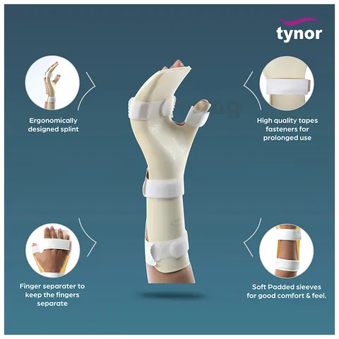 صمم للحد من الألم والتورم عن طريق توفير دعم مريح وشل في الوضع الطبيعي إلى مفاصل اليد والرسغ. يقلل من تهيج الأعصاب في نفق الرسغي من خلال دعم وراحة المعصم في وضع "حزمة فضفاضة". يحافظ على طول الأنسجة الرخوة وبالتالي منع التقلصات.